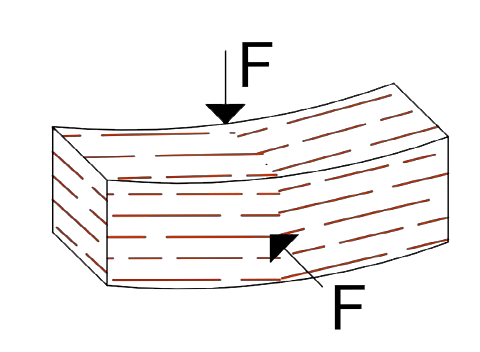 A flexão em vigas de madeira ocorre quando ela é submetida a um momento fletor, por ser simples não serão consideradas solicitações normais, e o corpo sofre uma curvatura de tal maneira que esforços de compressão são formados na parte superior da viga, esforços de tração na sua parte inferior e esforços cortantes na interface entre as fibras inferiores e superiores.